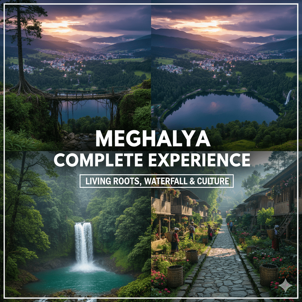 The ultimate Meghalaya tour covering Shillong, Cherrapunji, Mawlynnong, and Dawki. Experience all highlights from living root bridges to crystal clear rivers.